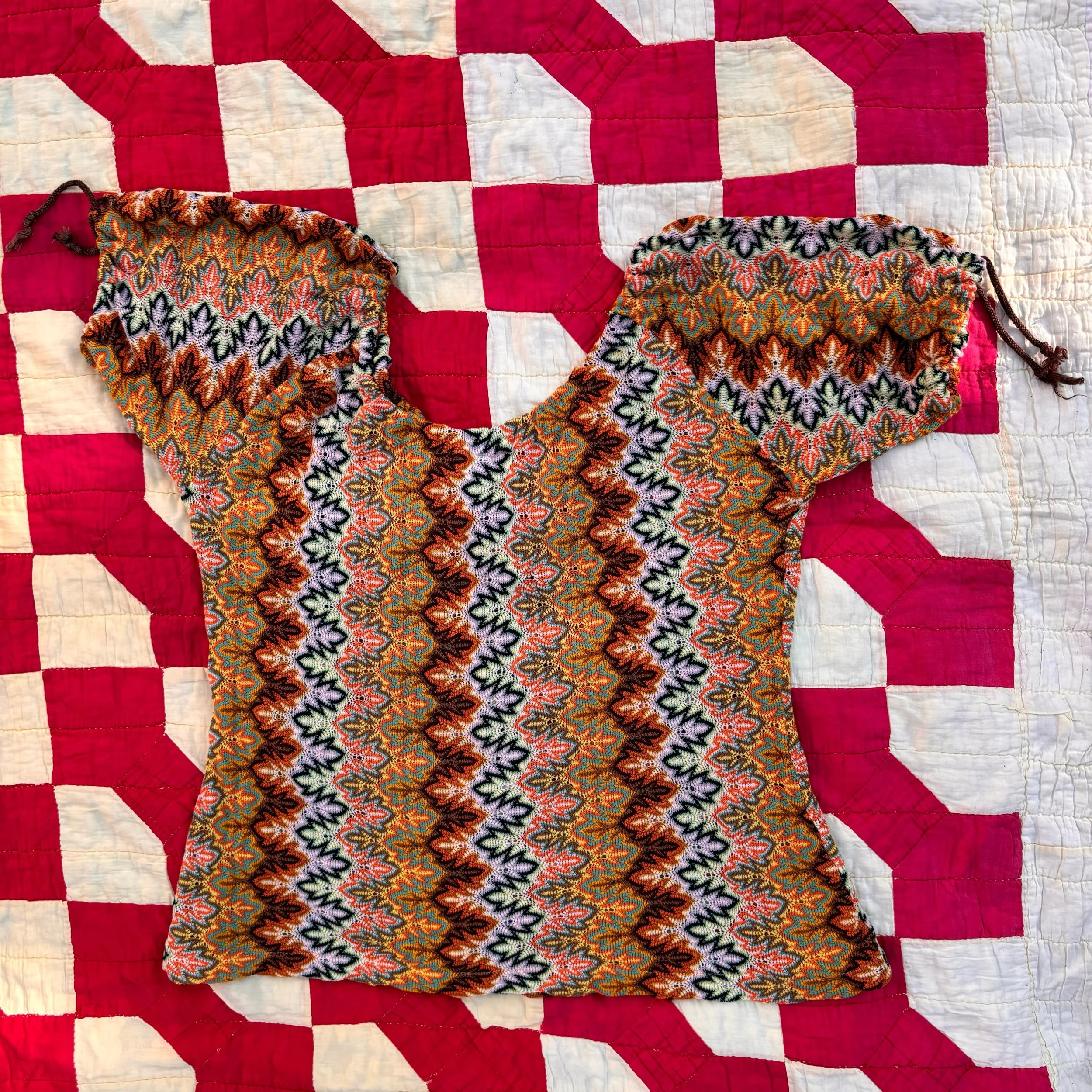A really sweet knit pattern that is reminiscent of Missoni! Likely from the late 60’s or early 70’s.